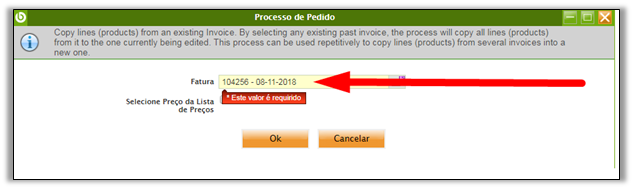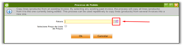 2 - Copiar todos os produtos da fatura selecionada no histórico de todas as faturas para diferentes parceiros de negócios usando o botão .