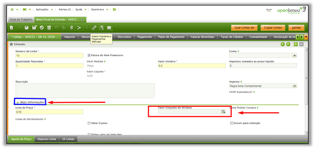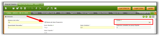 Depois que o cabeçalho da nota fiscal de entrada tiver sido preenchida corretamente e com suas linhas salvas.