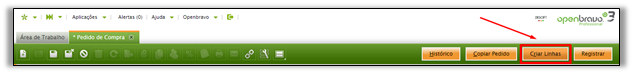 Quando as informações do cabeçalho estiverem preenchidas corretamente, você poderá acessar a guia "Linhas" para inserir os itens nas linhas e fazer o processo para completar o pedido.