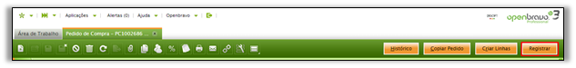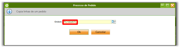• Após o clique no botão, o sistema seleciona o número do pedido e preenche o campo “Ordem”.