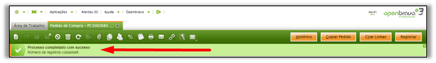 • Necessário selecionar o pedido que deseja copiar as linhas;