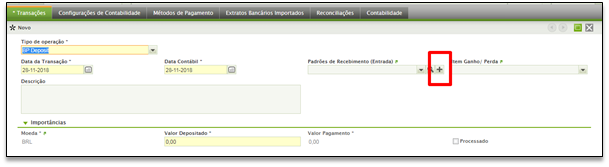 Se for necessário para criar uma transação de depósito de pagamento, o usuário deve clicar no botão '+' no seletor de pagamento e adicioná-lo ao pop-up de pagamento que será aberto. "Recebido em" precisa ser selecionado no campo "Documento".