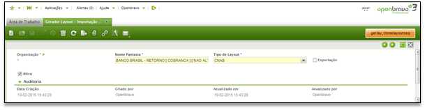 (Menu: configuração Geral | Dynamic Layout generator | gerador Layout – Importação)