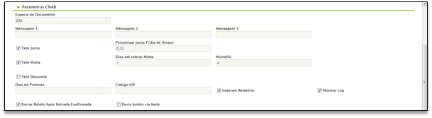 Envia boleto via banco: selecionando o campo, fará com que o sistema entenda que não é pra efetuar a ação do envio de boleto.