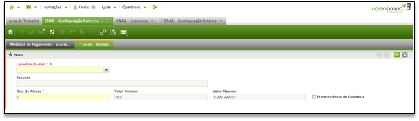 [Menu: Gestão financeira | CNAB | Configurações | CNAB - Configuração Remessa]