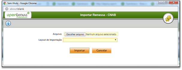 Em seguida, clicar no botão e o sistema acessa a partição do computador para que seja importado o arquivo CNAB.