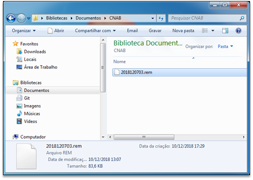 Selecionar o arquivo com a Extensão .REM para remessa ou .RET para retorno.