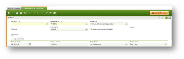 Na janela de configuração de processos será necessário configurar os Jobs que ficarão disparando e-mail automático.