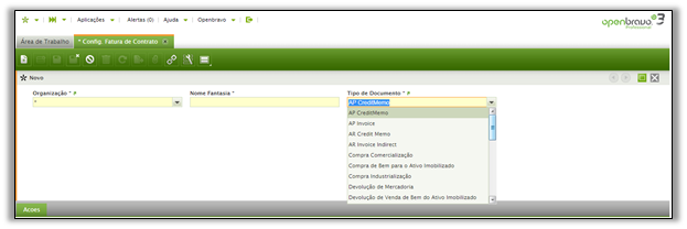 • Ação: dependendo do tipo de documento cadastrado no passo anterior, podemos ter ações diferentes: