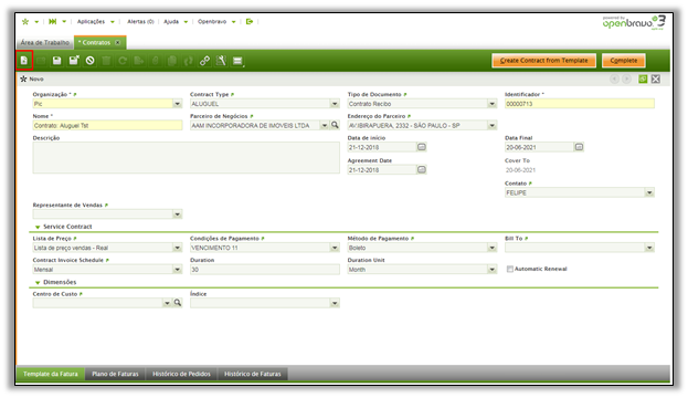 Nota: Atenção: não se esqueça de completar o contrato para disponibilizá-lo para o processo de faturamento