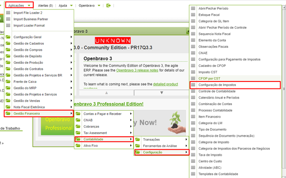 Para criar uma nova regra de impostos, acesse no menu Aplicações > Gestão financeira > Configurações > Configuração de impostos.