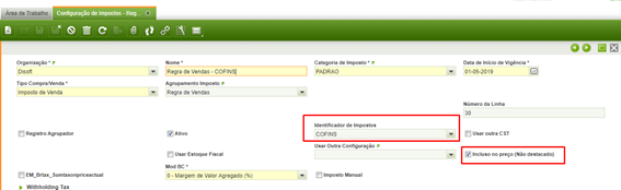 Identificador de impostos: marcar o imposto que está sendo criado.