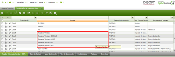 Nome: Nome da regra que foi criada + nome do imposto
