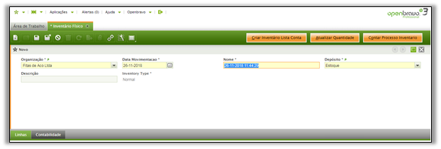 - Armazém: armazém no qual o inventário físico ocorre. Padrão para o valor da sessão no menu Preferências do Usuário de navegação superior.